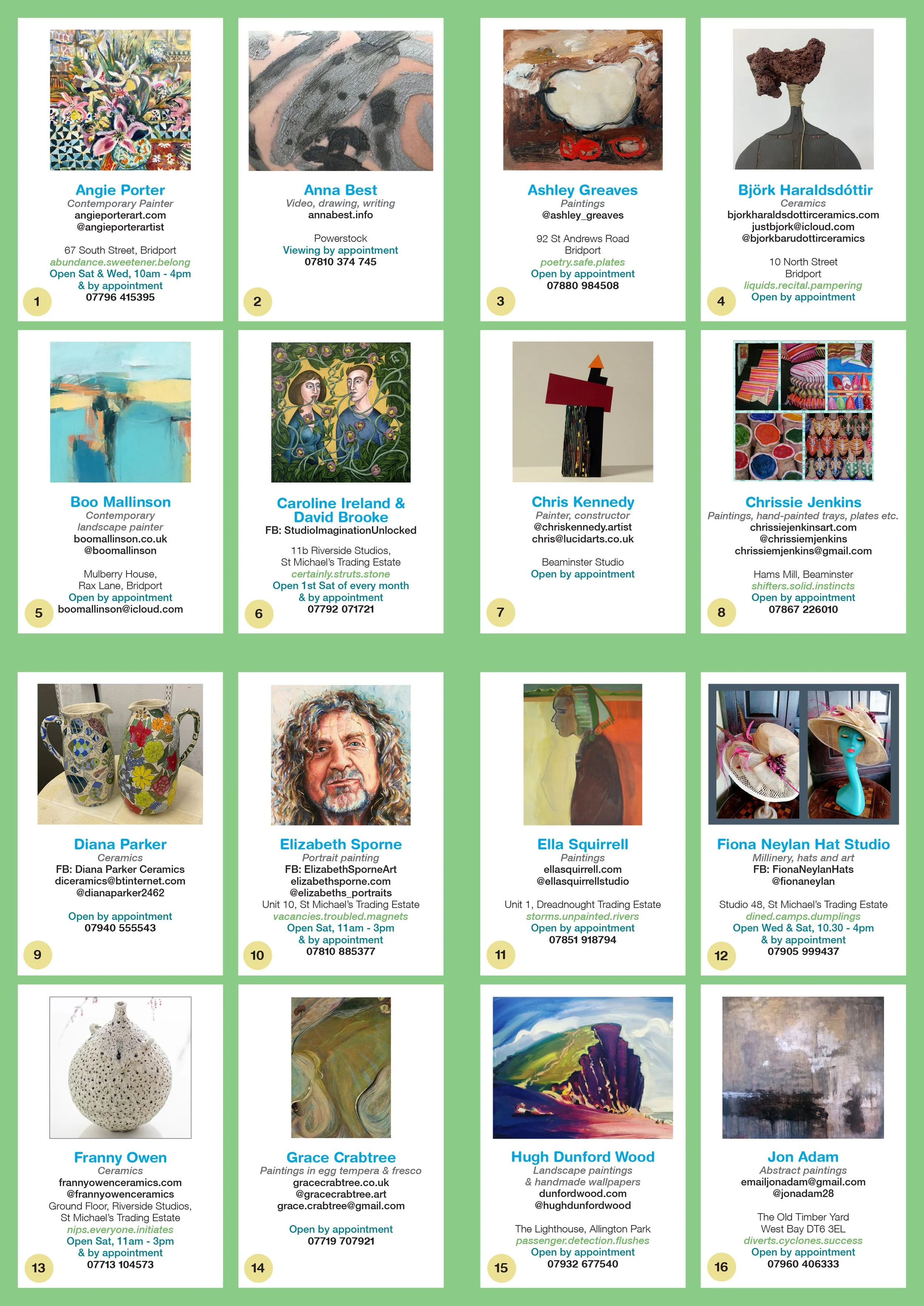 You can now pick up a large fold-out Art Map from venues throughout Bridport & West Dorset with directions to 38 Artist Studios & Galleries, as well as 6 great local Cafes.