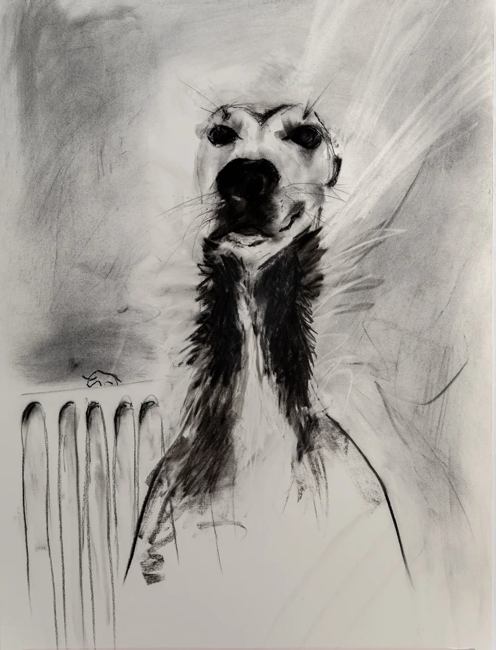 The point at which an abstract mark becomes a representational suggestion of form has always been of interest to Charlotte and the process-driven element of abstraction presented by the texture and visible brushstrokes of the paint (or scratches and smudges of charcoal) is often given the space to make its own contribution to the work. Likewise, physical features of some subjects may be distorted or exaggerated, while at the same time revealing a concentration of study of the subject that goes beyond traditional caricature.