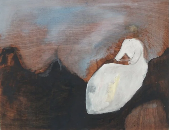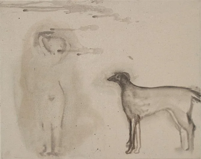The large brown shape in my painting is also similar a Ucello painting of a man on a horse on a plinth, especially the horse's bottom. Horses have always been very important to me, and they have become a “personal symbol” of freedom and being young. When I was younger I spent a lot of time riding my horse around in the countryside, thinking about people I was in love with, and I think in these paintings I am revisiting that time in my life, and maybe saying goodbye to it. My paintings evolve from a series of images