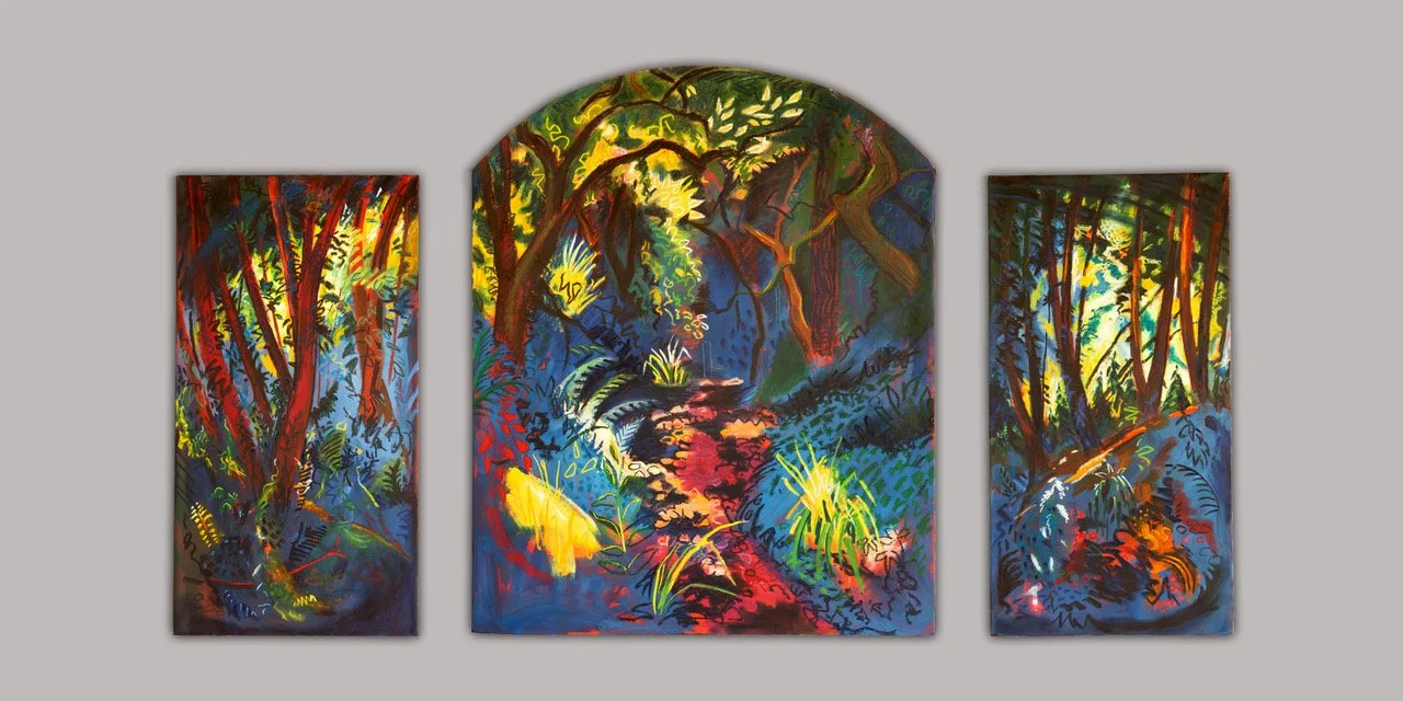 Hugh Dunford Wood has worked as an independent artist designer since student days at Oxford’s Ruskin School of Art in the 1970s. He made a good living painting landscapes and portraits; he ran a fashion business for 15 years handpainting mens’ ties with a team of 24 artists under his direction. He designs crockery, jewelry, furnishing fabrics and wallpapers.